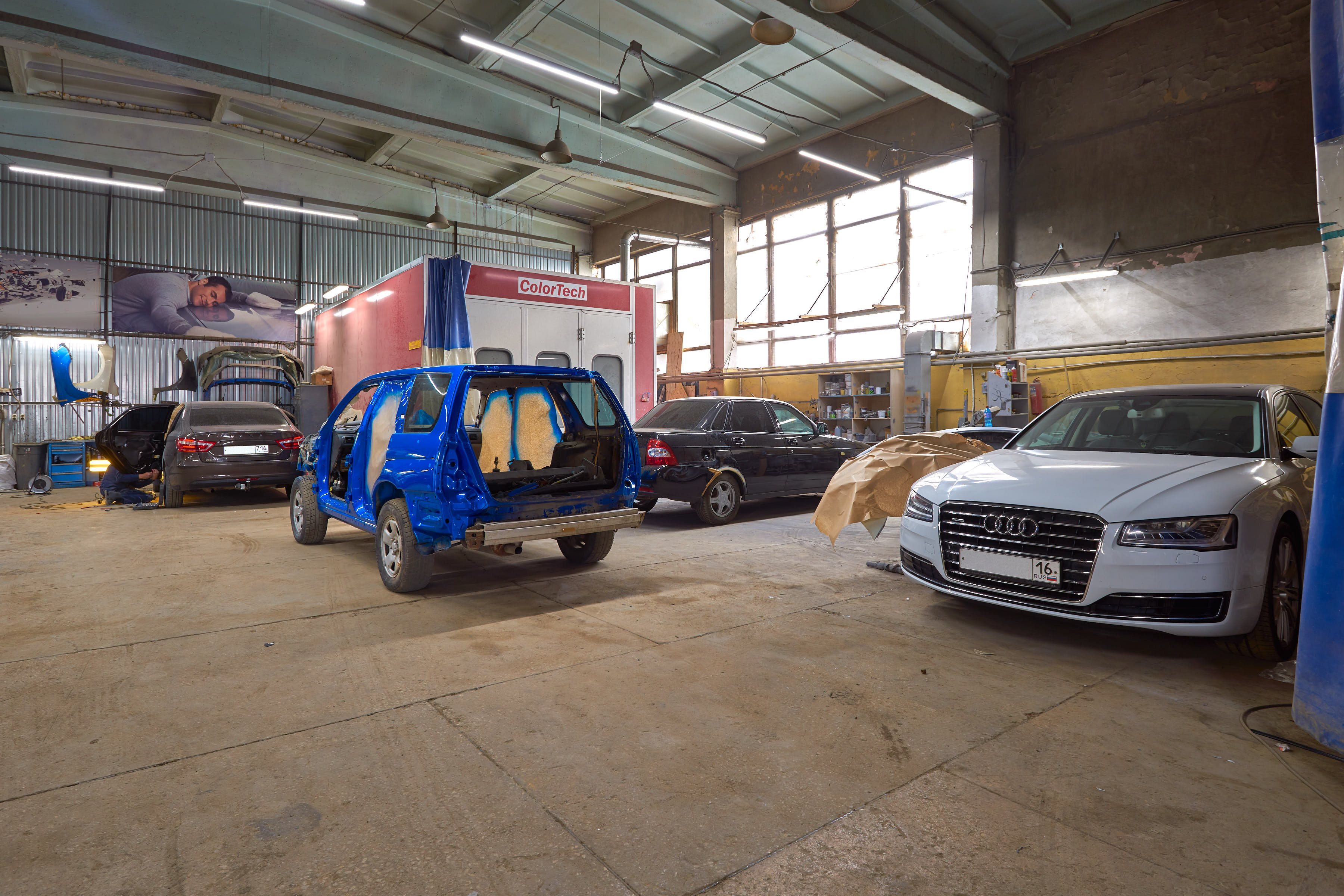 Компания располагает коллективом профессиональных автотехников: у нас выполняют замену масла, заправку и починку кондиционеров, кузовной ремонт, покраску и полировку кузова, ремонт выхлопных систем, двигателей и подвески, сход-развал, шиномонтаж. На услуги мастерской дается гарантия, срок которой может зависеть от типа работ и использованных материалов.